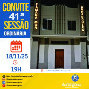 A Câmara municipal de Anhanguera, por intermédio de seu presidente Reginaldo Araújo,tem o prazer de te convidar para esta sessão