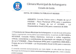 Edital de consulta pública nº 002-2025 Edital de Divulgação da Consulta Pública sobre o Projeto da LOA 2026 e PPA2026-2029