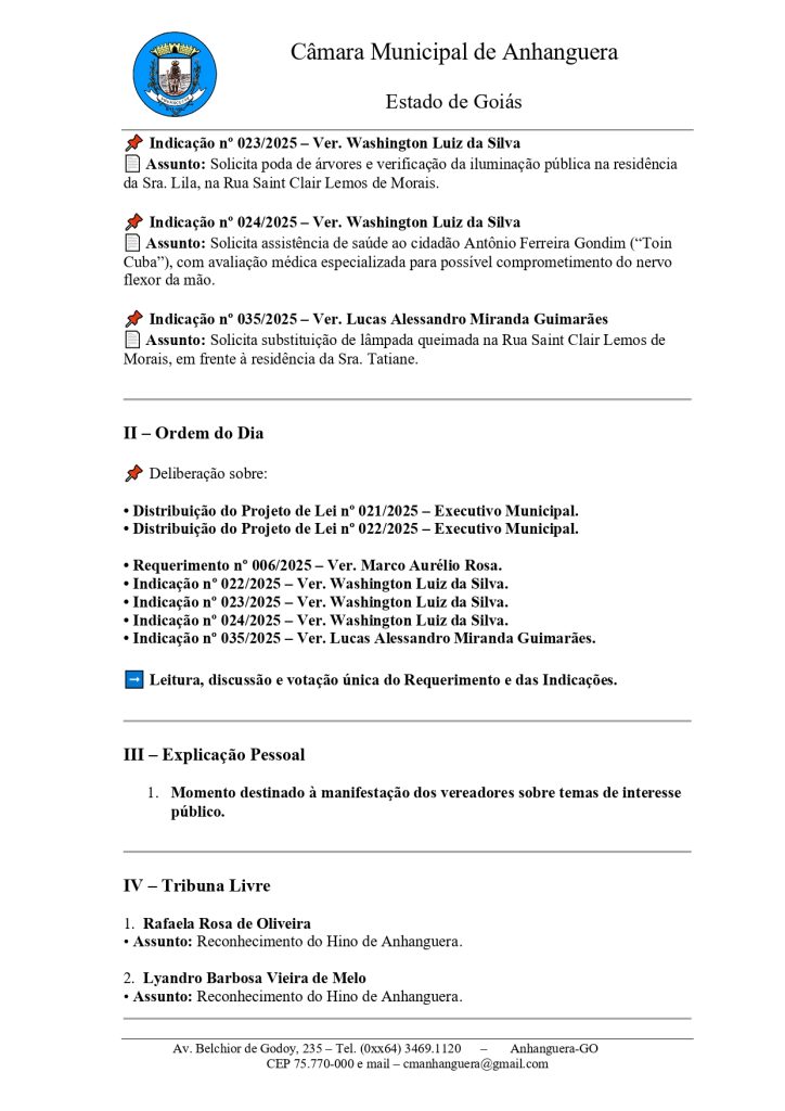 A Câmara municipal de Anhanguera, por intermédio de seu presidente Reginaldo Araújo,tem o prazer de te convidar para esta sessão