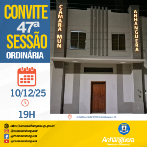 A Câmara municipal de Anhanguera, por intermédio de seu presidente Reginaldo Araújo,tem o prazer de te convidar para esta sessão