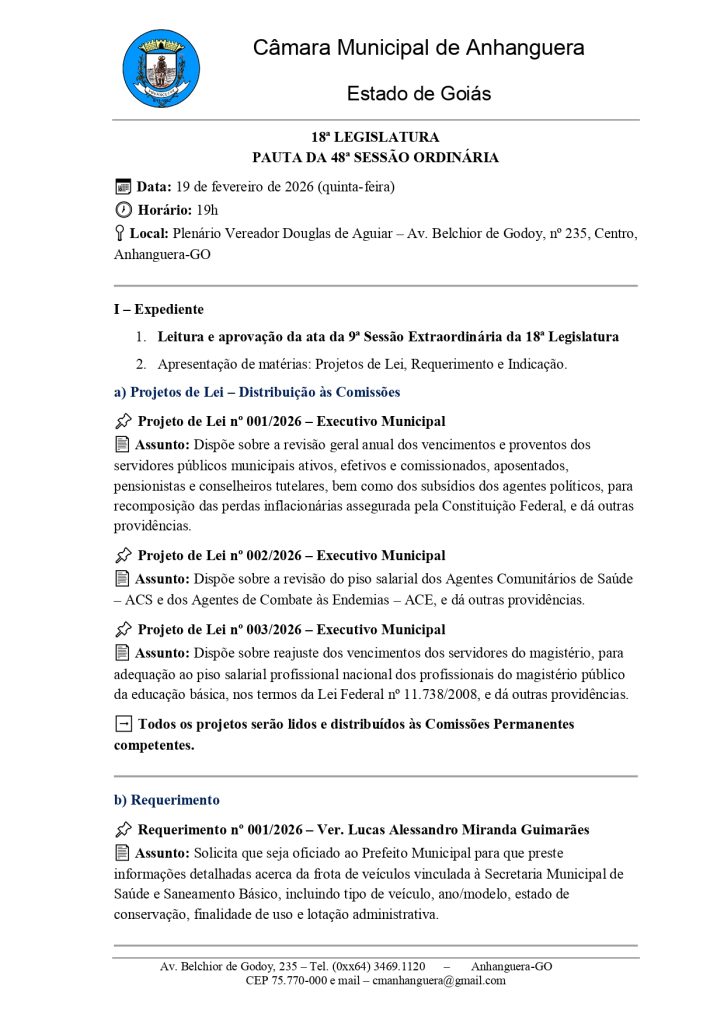 Convite para a 1ª Sessão Ordinária 2026