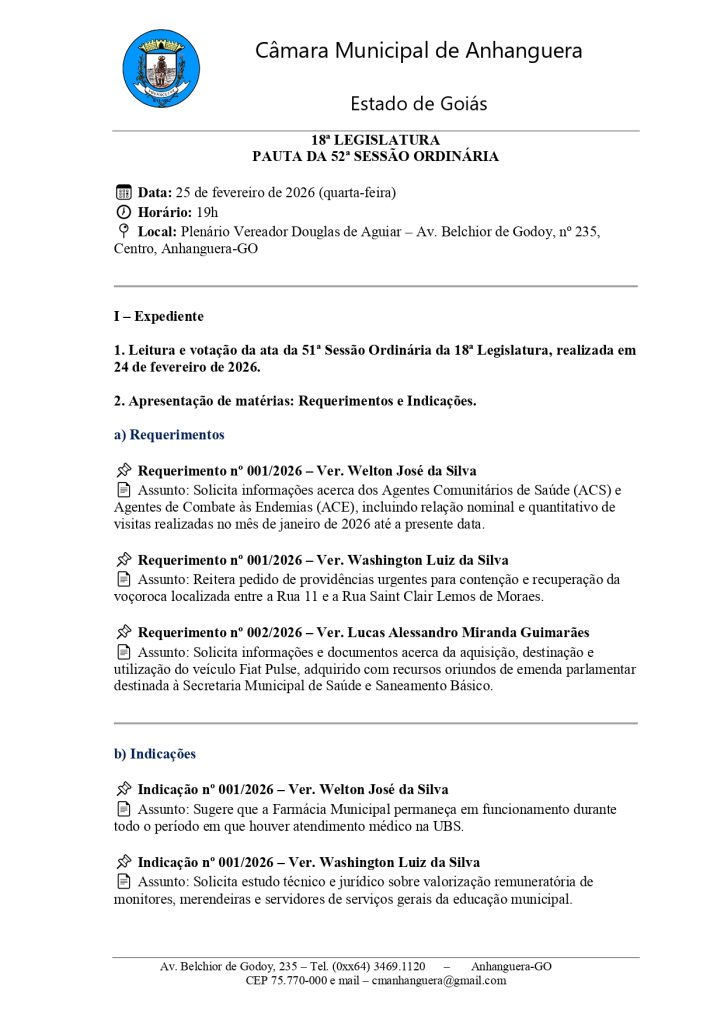 Convite para a 5ª Sessão Ordinária 2026