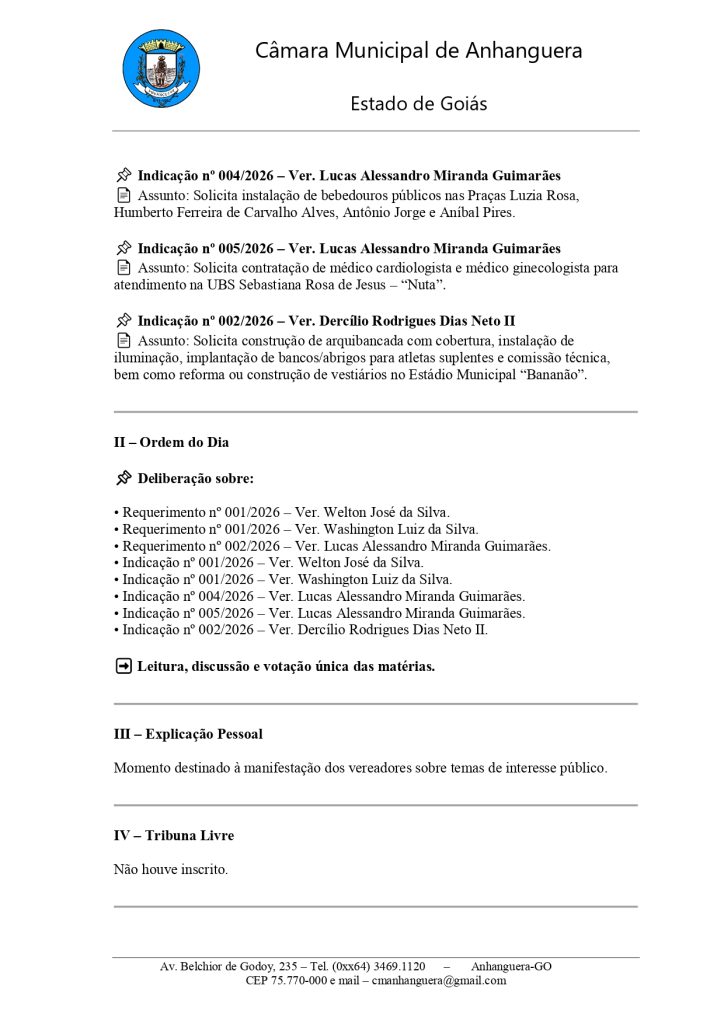 Convite para a 4ª Sessão Ordinária 2026