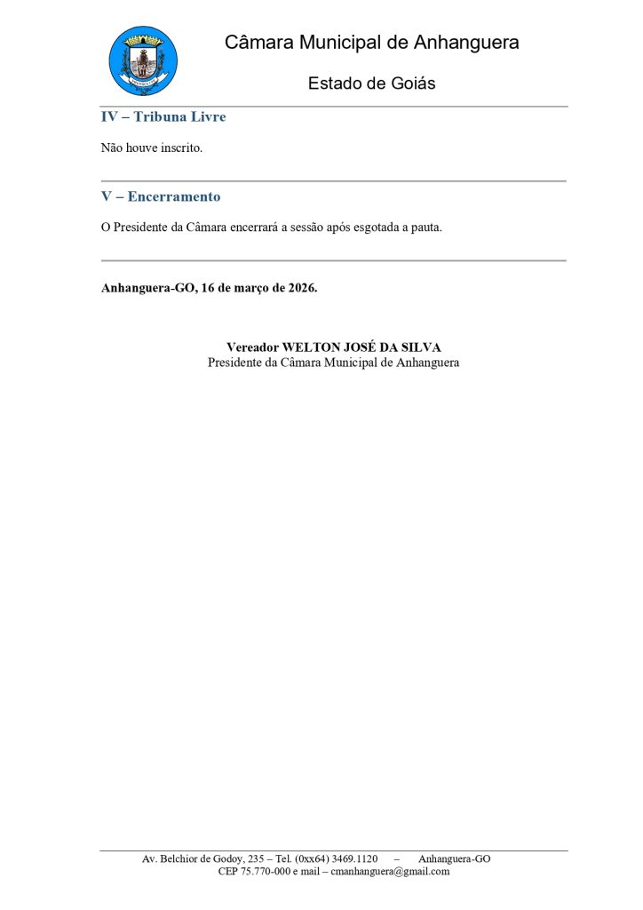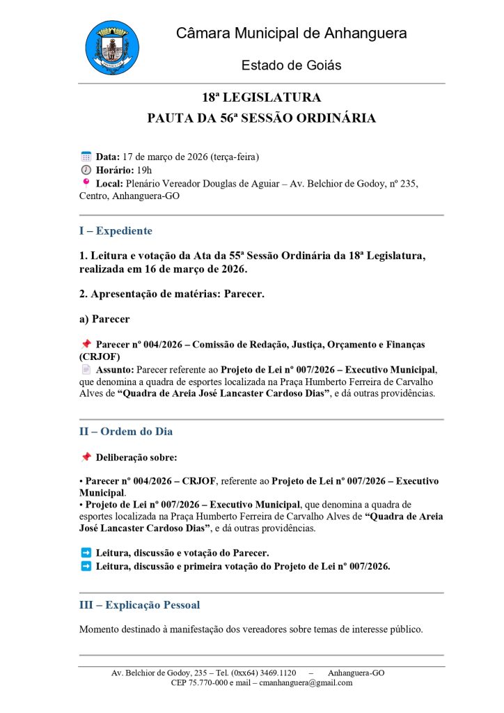 Convite para a 7ª Sessão Ordinária 2026