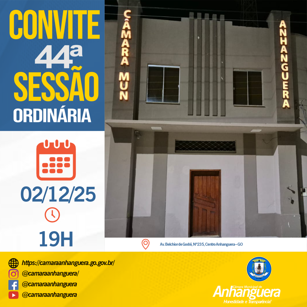 A Câmara municipal de Anhanguera, por intermédio de seu presidente Reginaldo Araújo,tem o prazer de te convidar para esta sessão